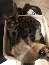 We hebben twee jonge Bengaalse katten, een jongen en een meisje uit hetzelfde nest. Ze zijn nu allebei 9 maanden oud.